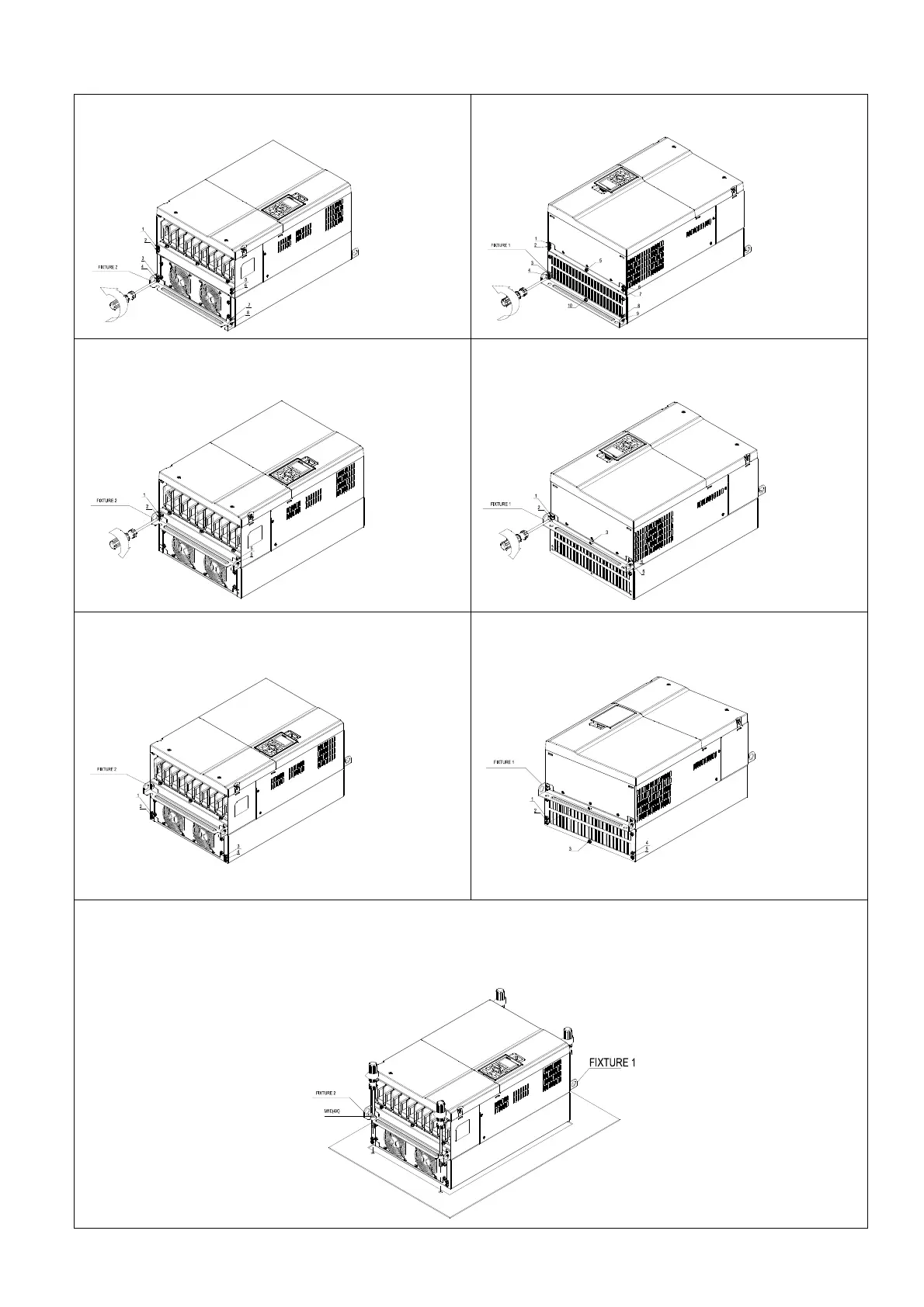 1. Loosen 8 screws and remove Fixture 2 (as shown in