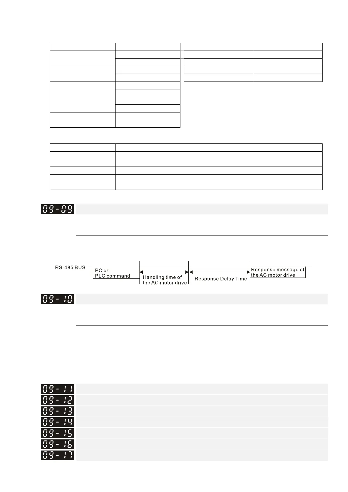 Sets the response delay time after the AC motor drive receives a communication command as