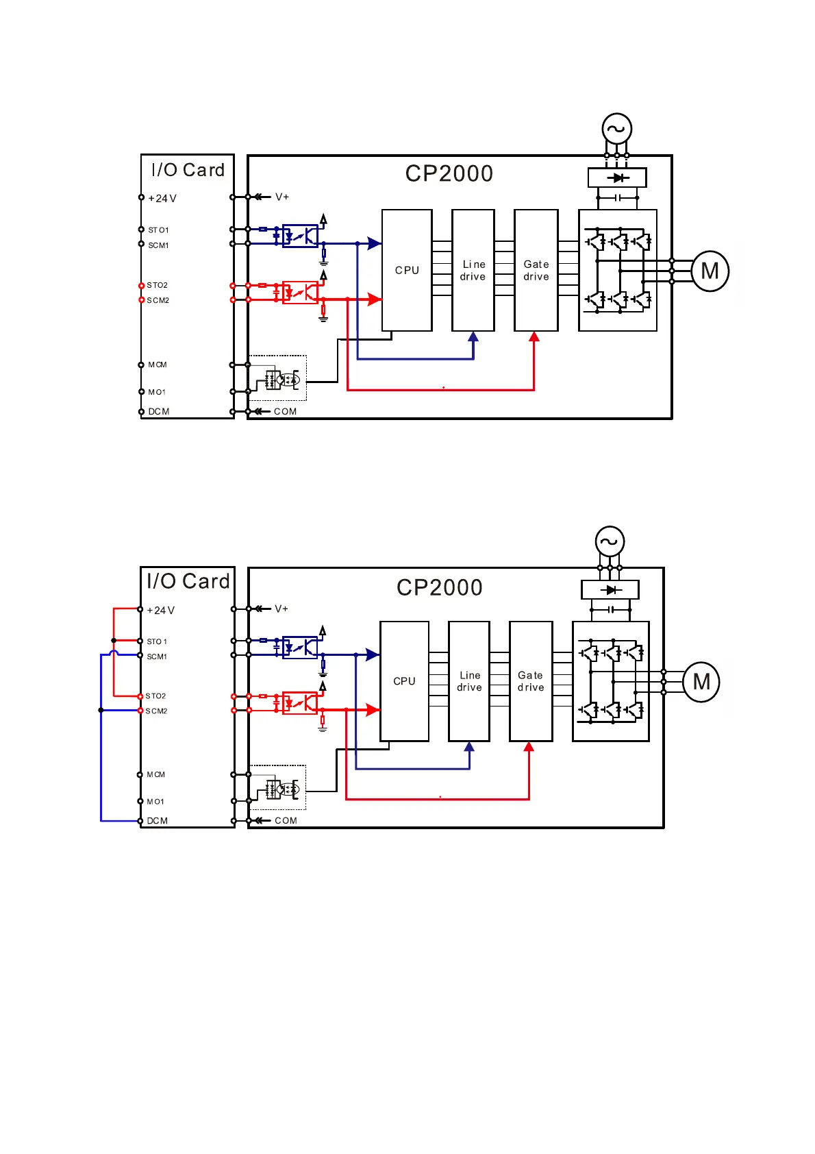 18-3-2 In the figure below, the default setting for +24V-STO1-STO2 and SCM1-SCM2-DCM is short