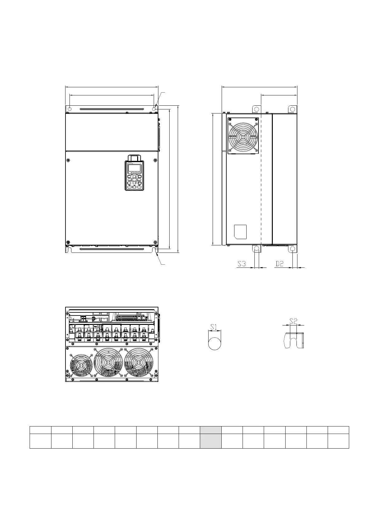 Frame W H D W1 H1 H2 H3 D1* D2 S1/S2 S3 Φ1 Φ2 Φ3