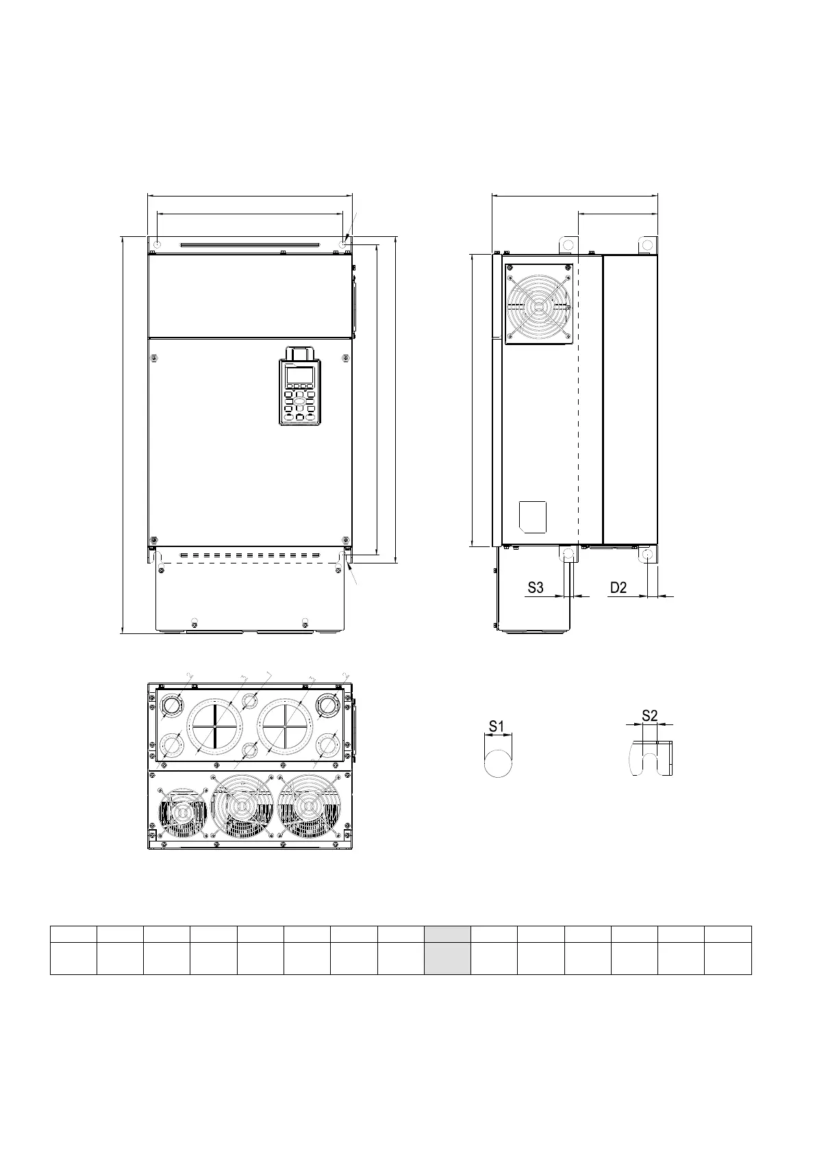 Frame W H D W1 H1 H2 H3 D1* D2 S1, S2 S3 Φ1 Φ2 Φ3