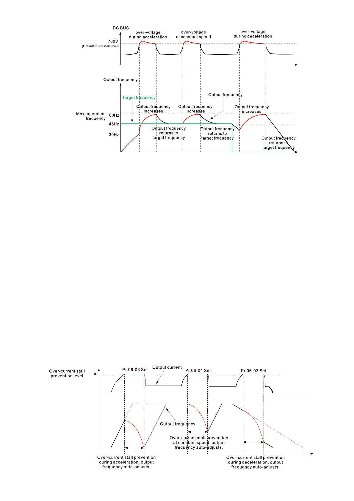 selection for over-current stall prevention at constant speed (Pr.06-05). When the output current
