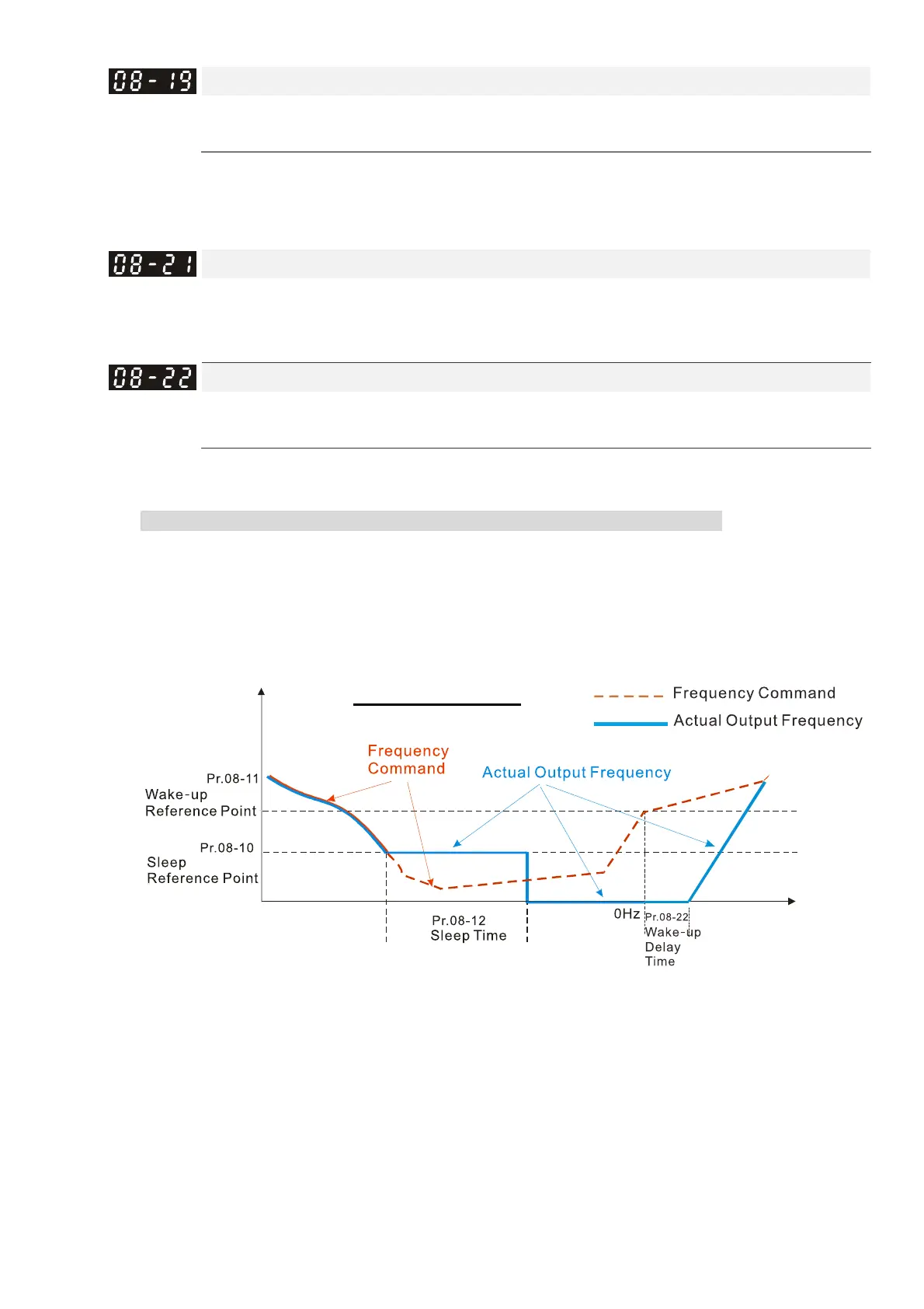 wakes up. The wake-up integral frequency limit = (Pr.01-00 × Pr.08-19%)