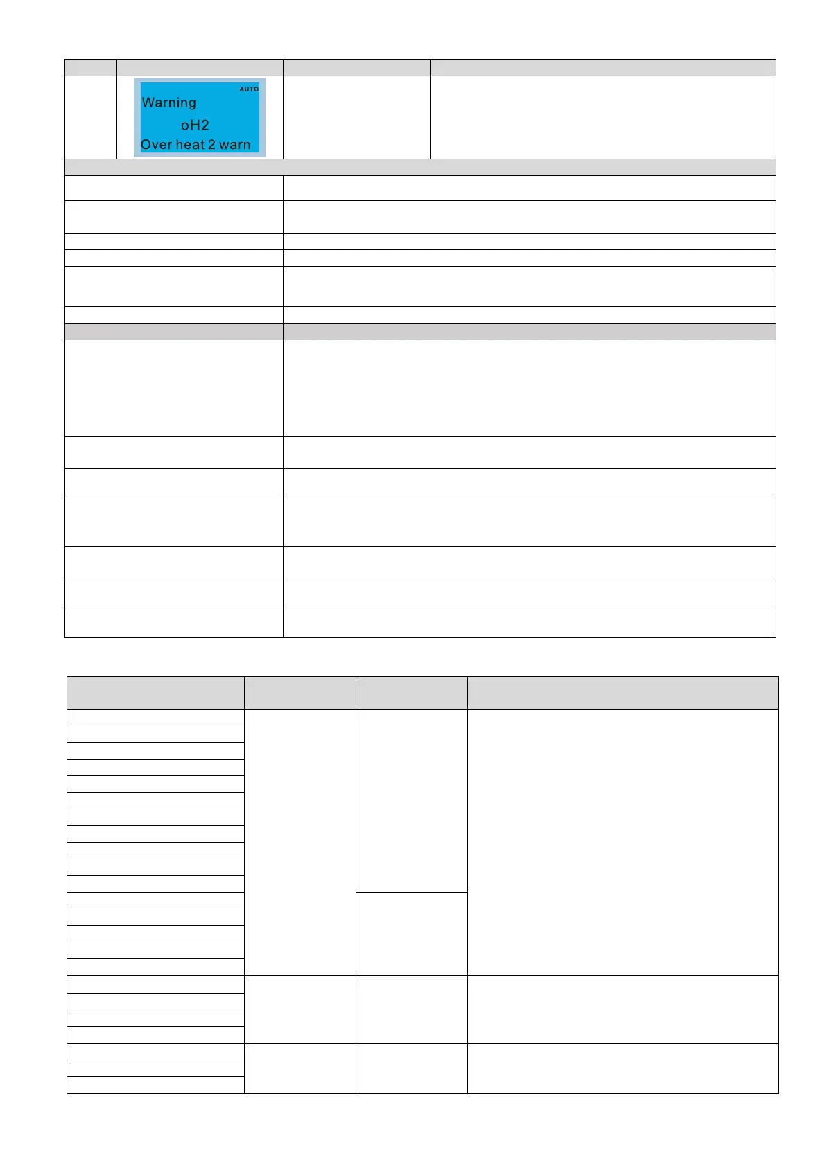 ID No. Display on LCD Keypad Warning Name Description