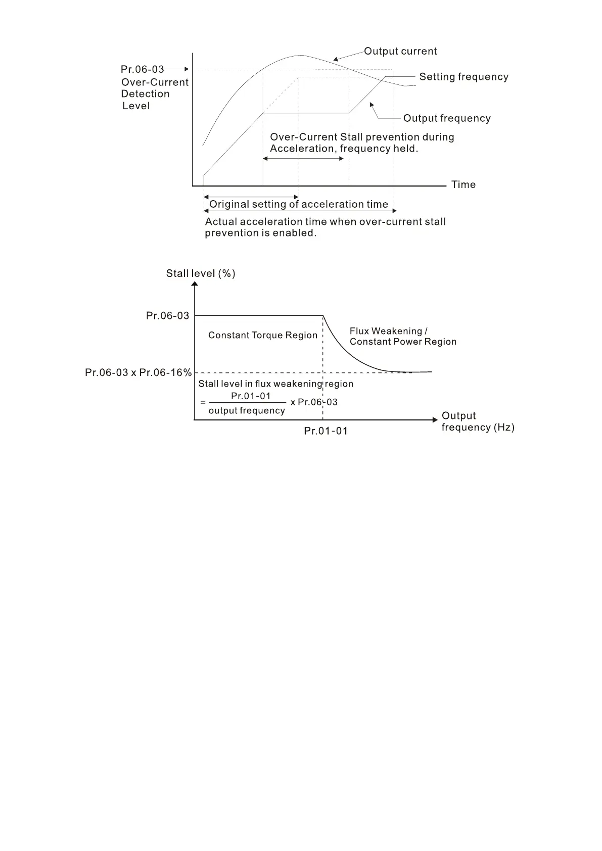 Refer to Pr.06-16 for the stall level in flux weakening region. The protection curve: