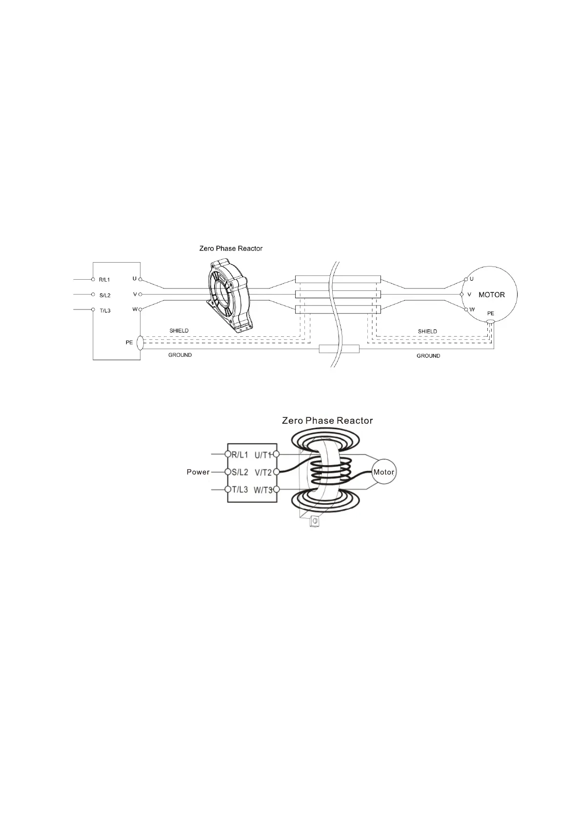 reactor; only pass the motor wire and power cable through the zero phase reactor. With longer motor