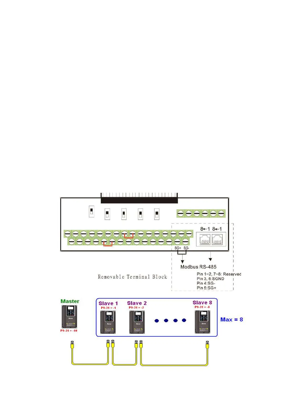 Set Pr. 09-31 = -1 to -8 in order to access 8 nodes, and set Pr. 00-20 = 1 to define the control source