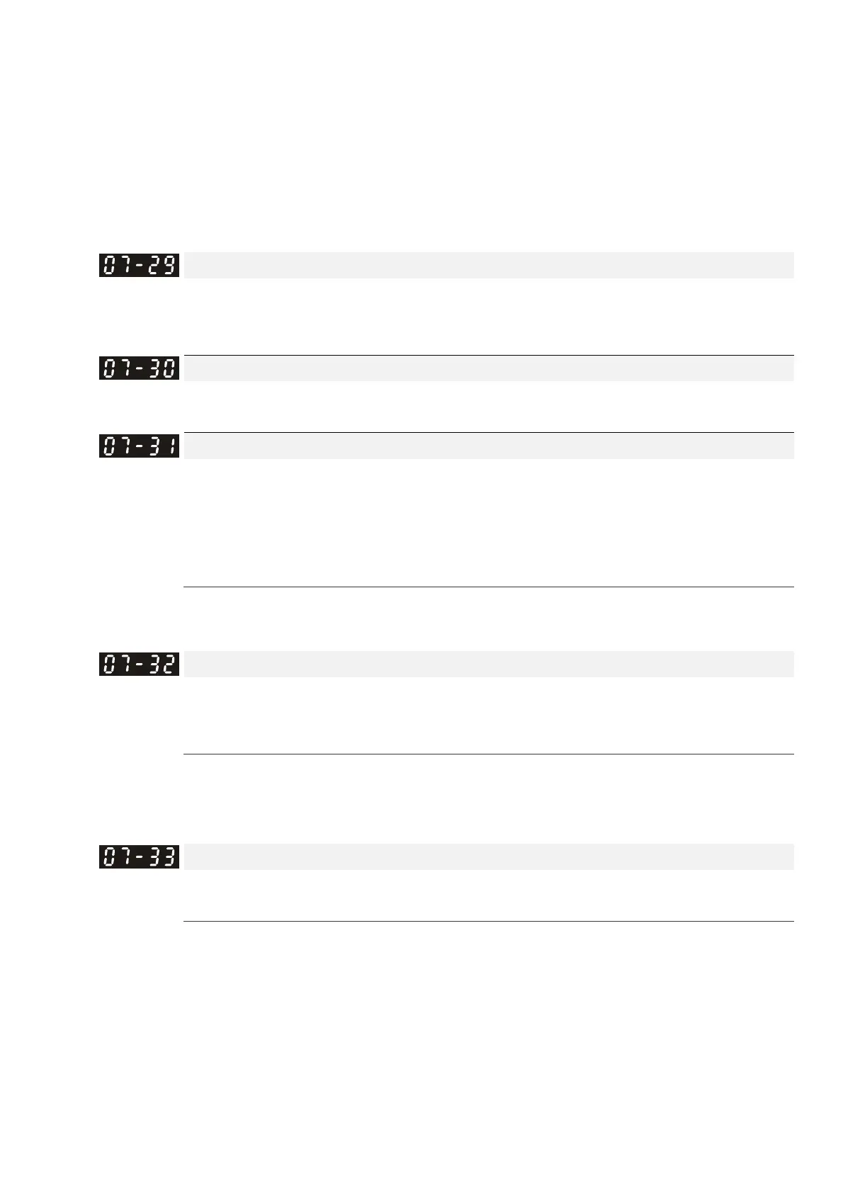 The Pr.07-29 to Pr.07-31 set the allowable slip level / time and the over-slip treatment when the