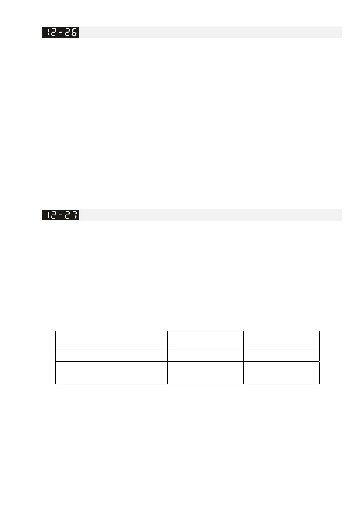 10: The operation time for Motor 1–8 (Pr.12-10–Pr.12-25) all return to zero.