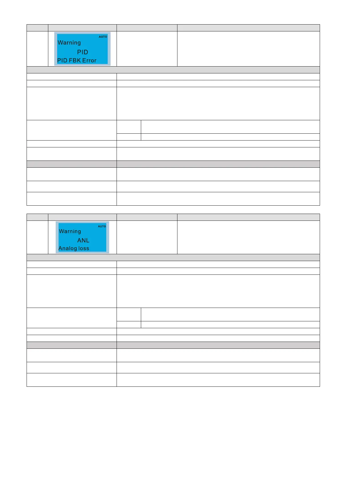 “Warning” occurs when Pr.03-19=1 or 2. The “Warning automatically