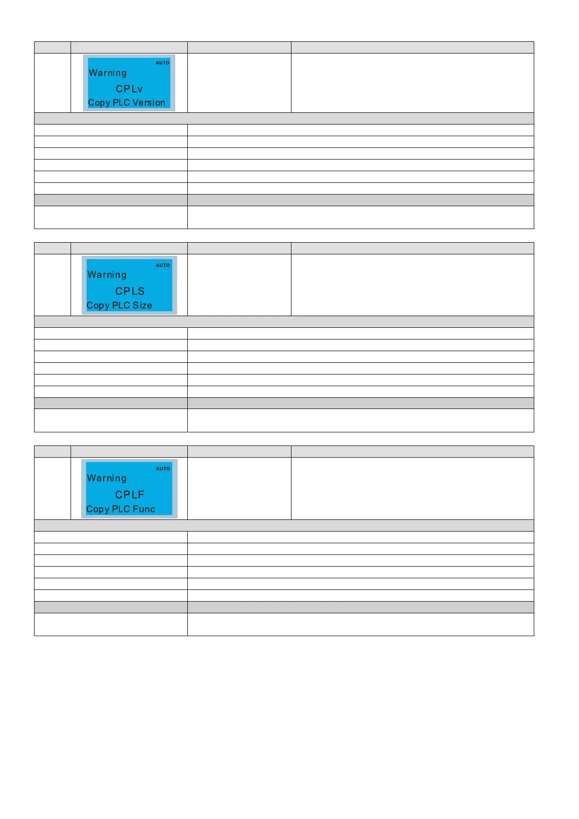 Disable PLC function first, then run the PLC copy function again
