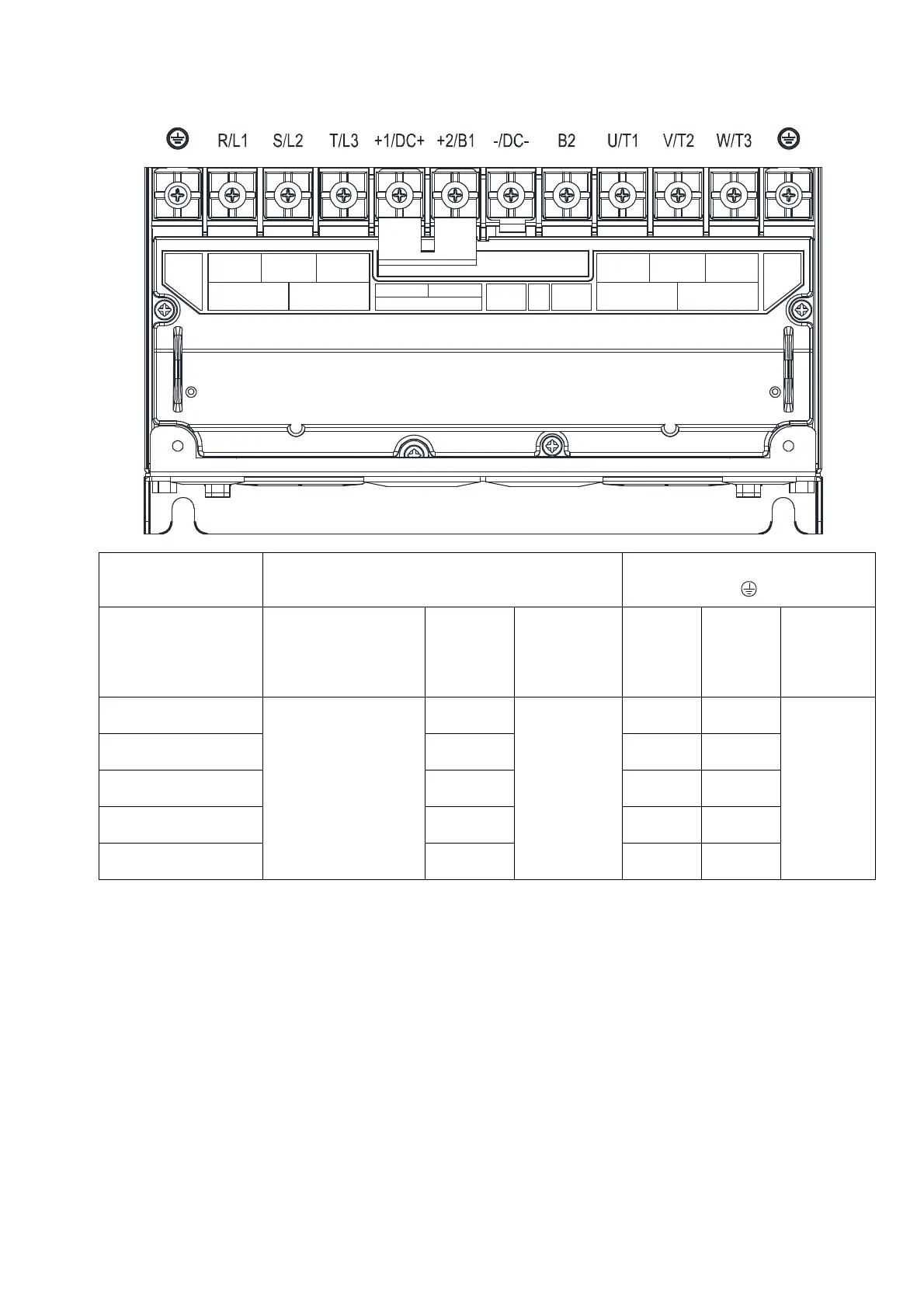 R/L1, S/L2, T/L3, U/T1, V/T2, W/T3, DC+, DC-,