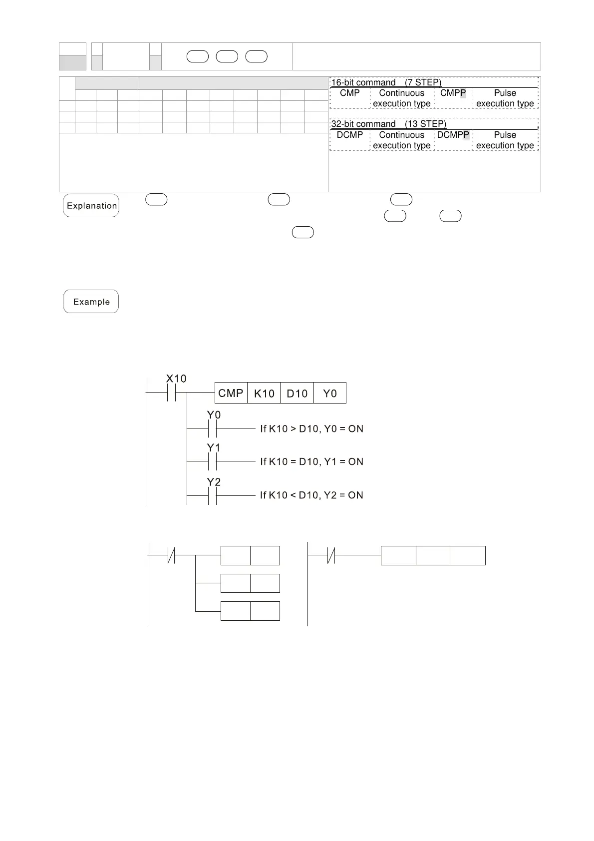 When X10=On, the CMP command executes, and Y0, Y1 or Y2 will be On. When