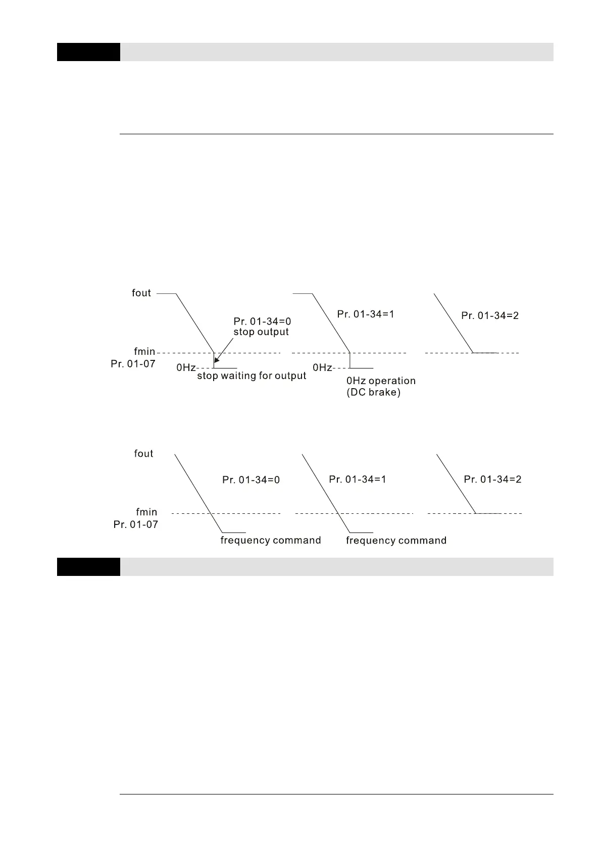When the drive’s Frequency command is lower than Fmin (Pr.01-07 or Pr.01-41), the drive