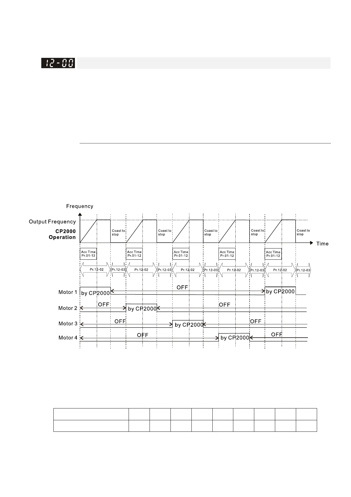 time setting for Pr.12-02, the CP2000 stops that motor. After the delay time setting for Pr.12-03,