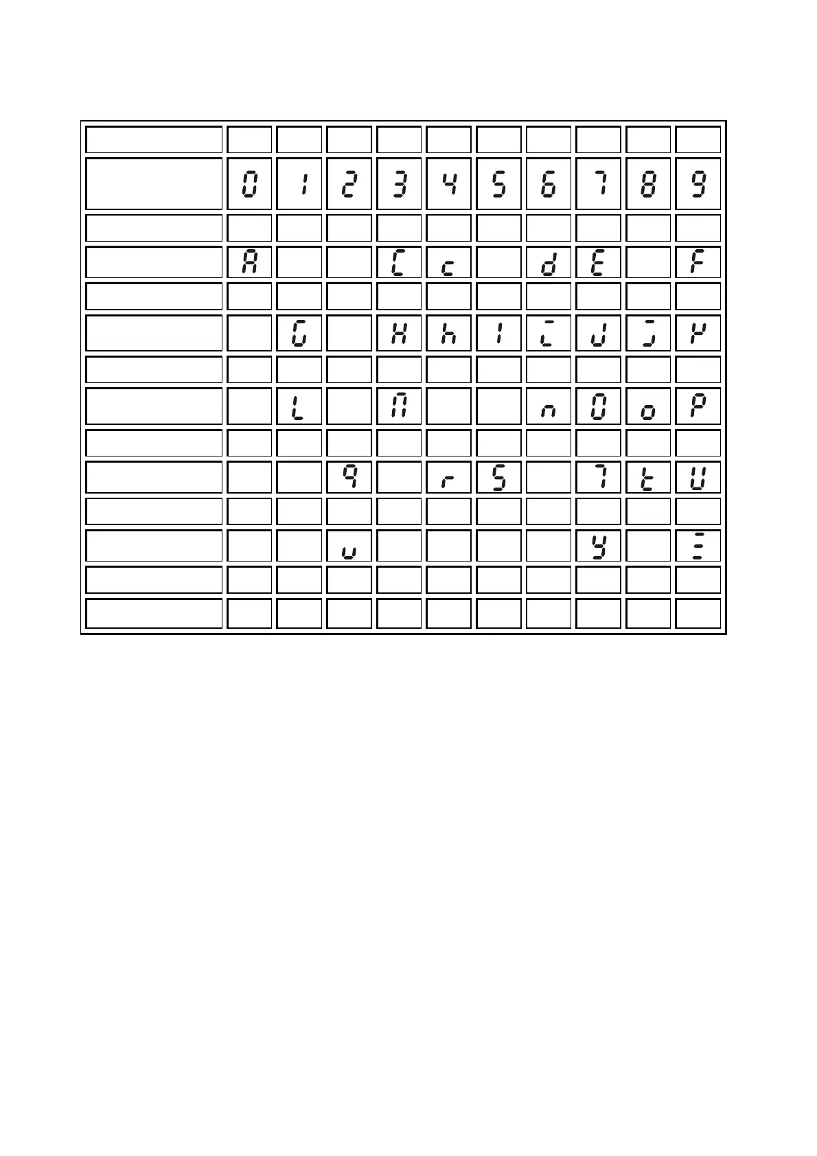 List of Characters Shown on the Seven-segment Display of the Digital