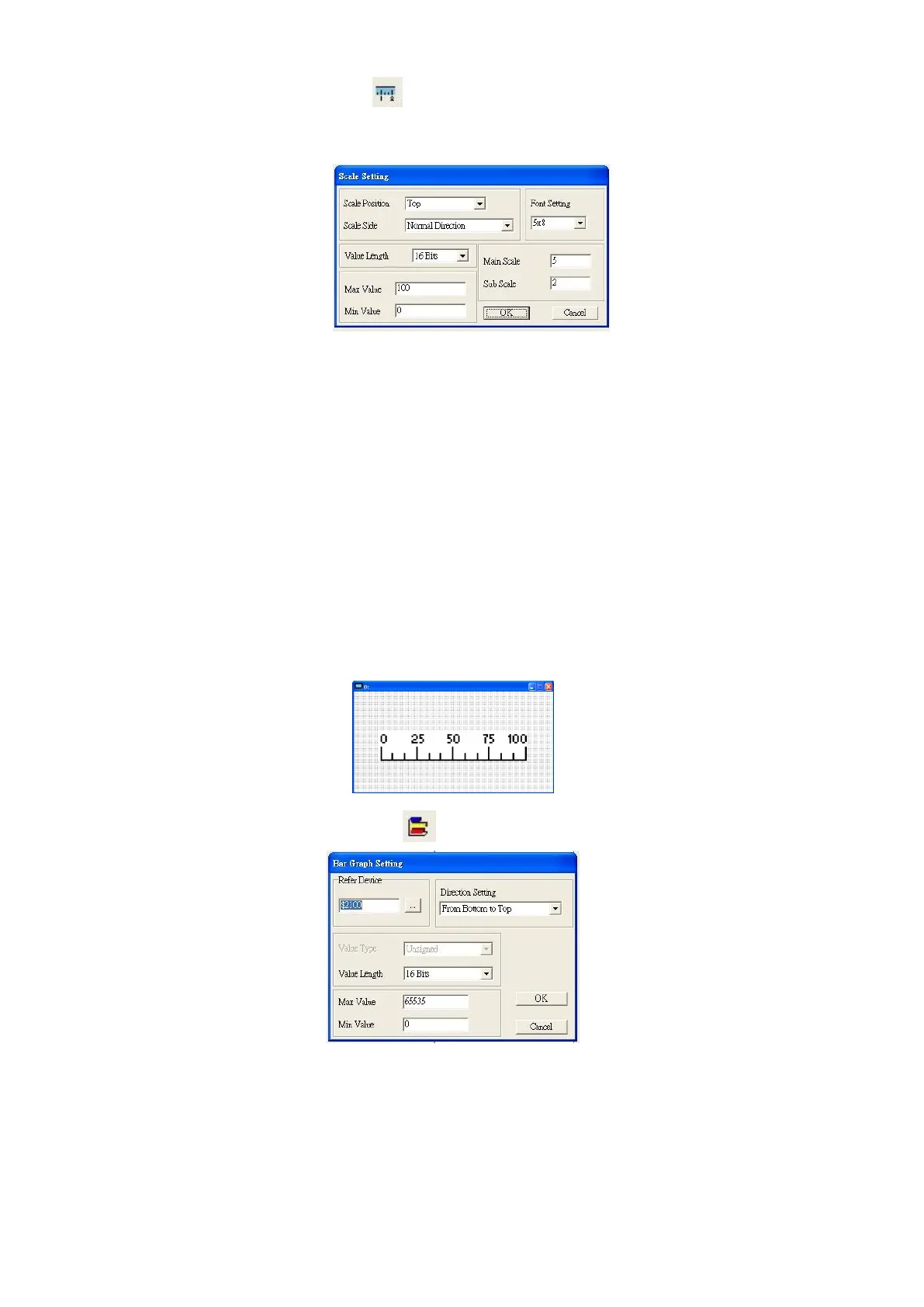 maximum value causes the bar graph is full (100%). A value between the minimum and maximum