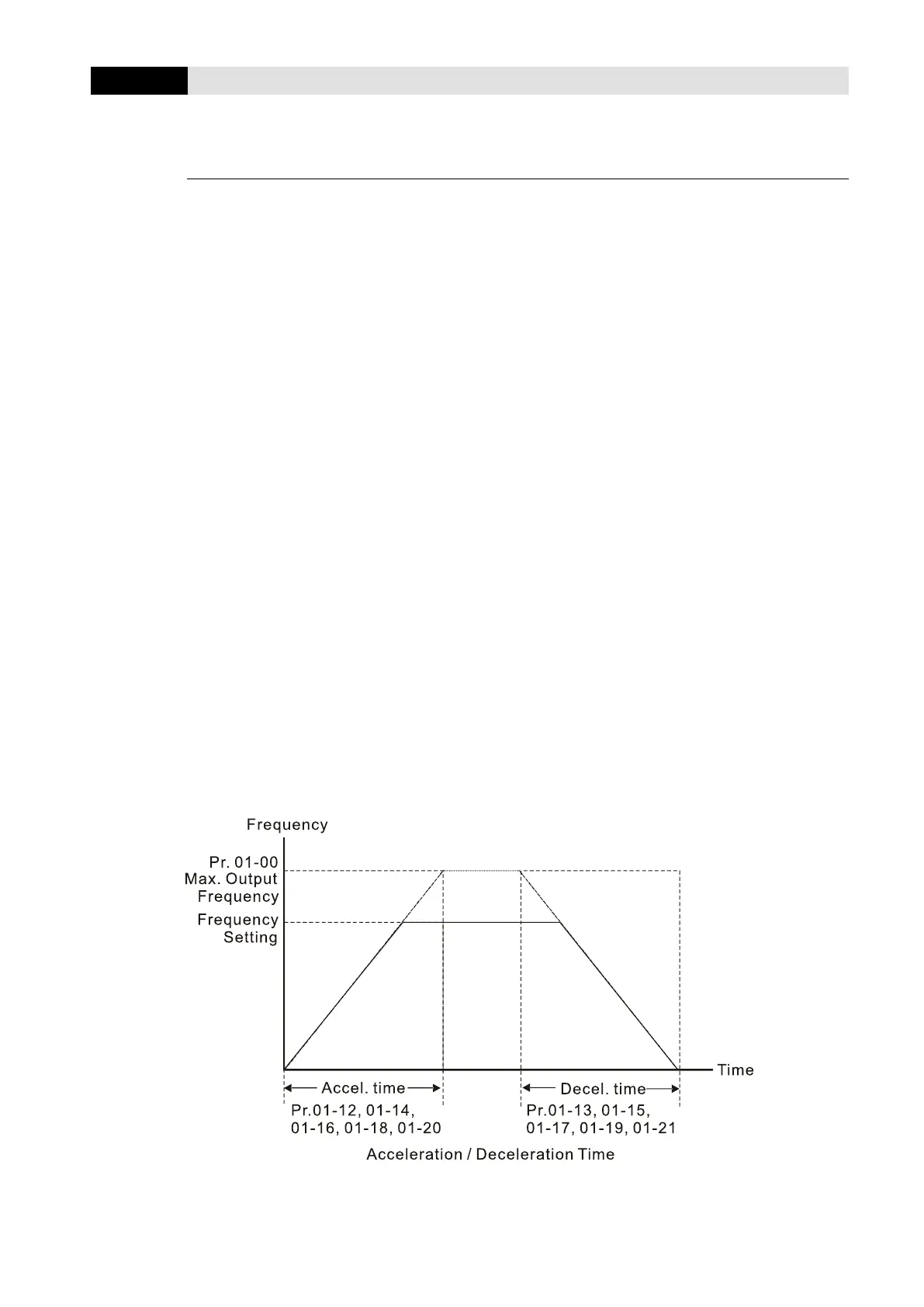 to the maximum operation frequency (Pr.01-00). The deceleration time determines the time