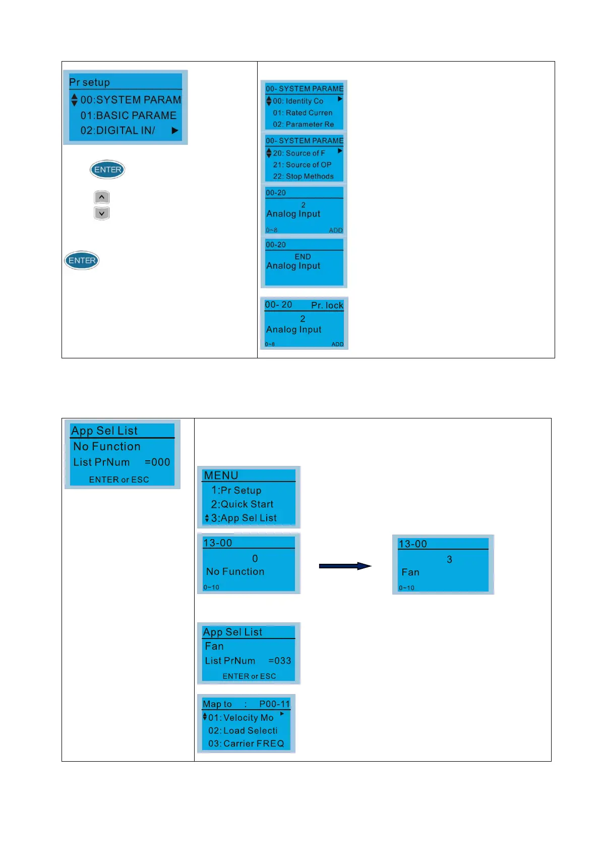 Press ENTER to enter the Fan application set screen.