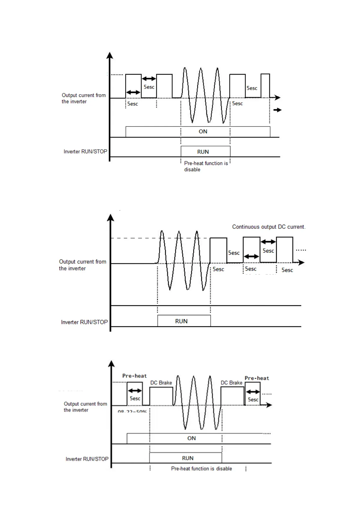 drive is stopped, the preheating function starts to output DC current continuously.