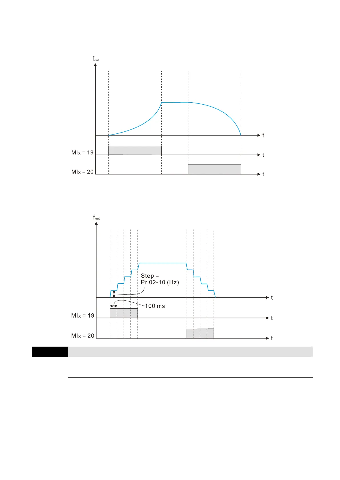 The tiered increasing or decreasing Frequency command (F) operates according to the setting