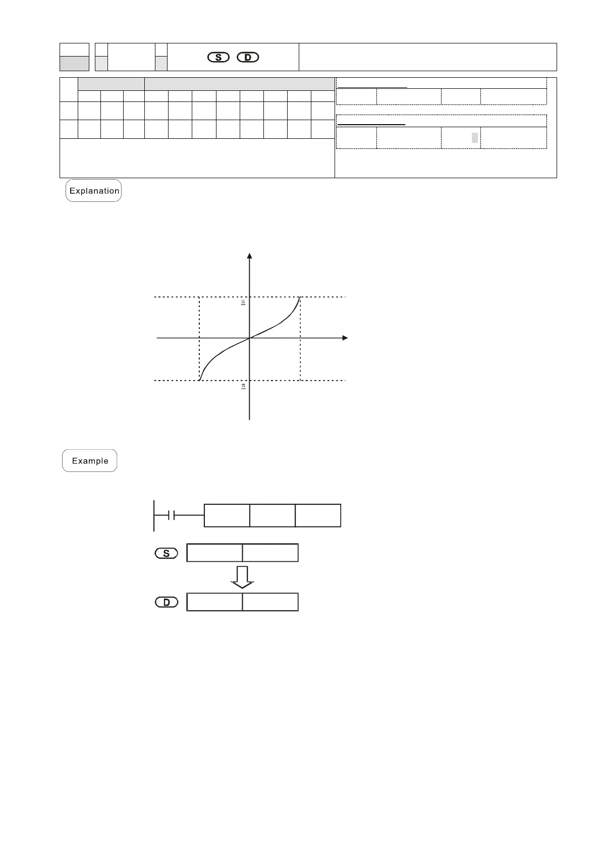S: the designated source (binary floating point number). D: the ASIN value result.