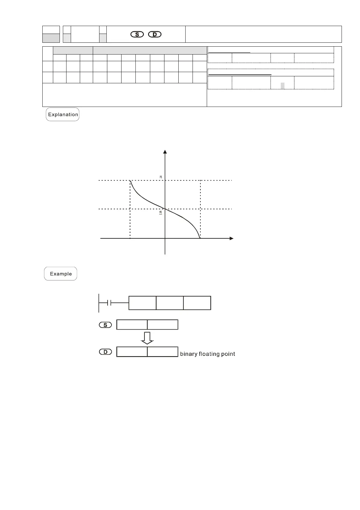 When X0 = ON, finds the ACOS value of the designated binary floating point