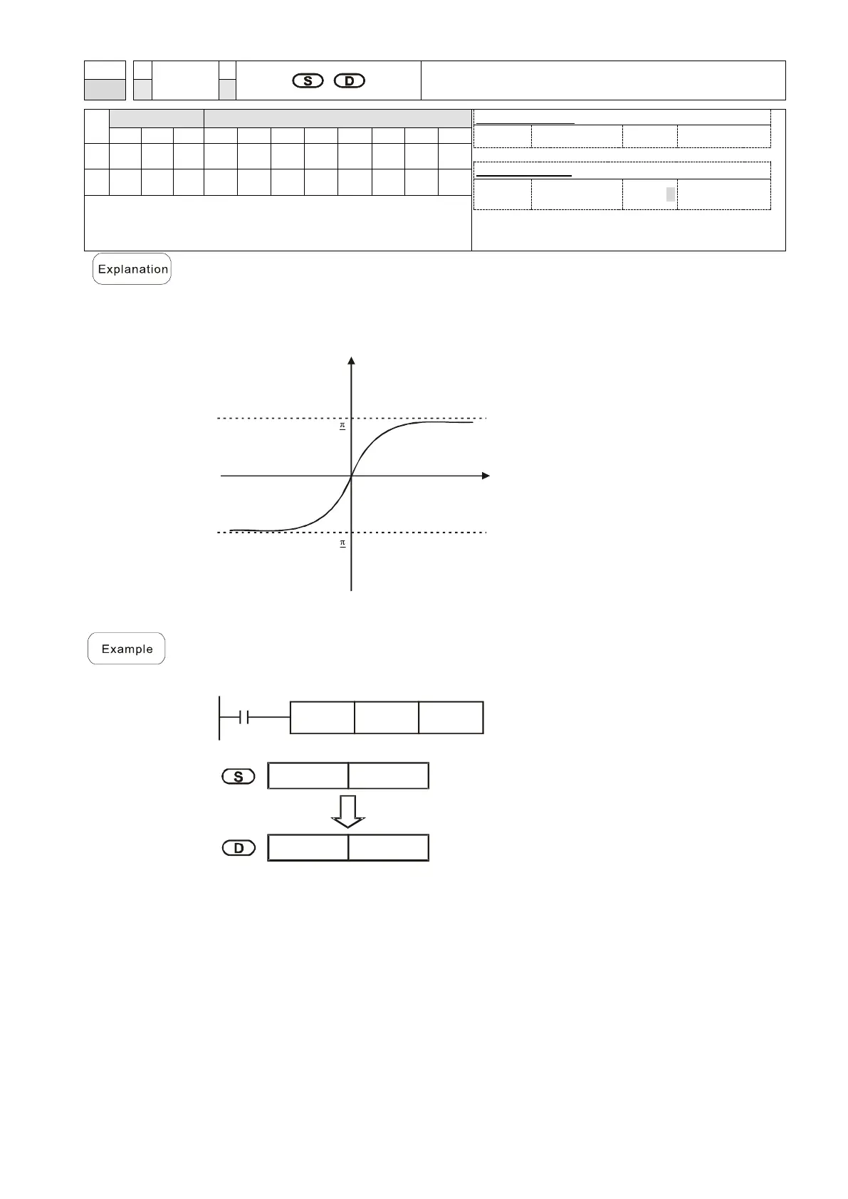 S: the designated source (binary floating point number). D: the ATAN value result.