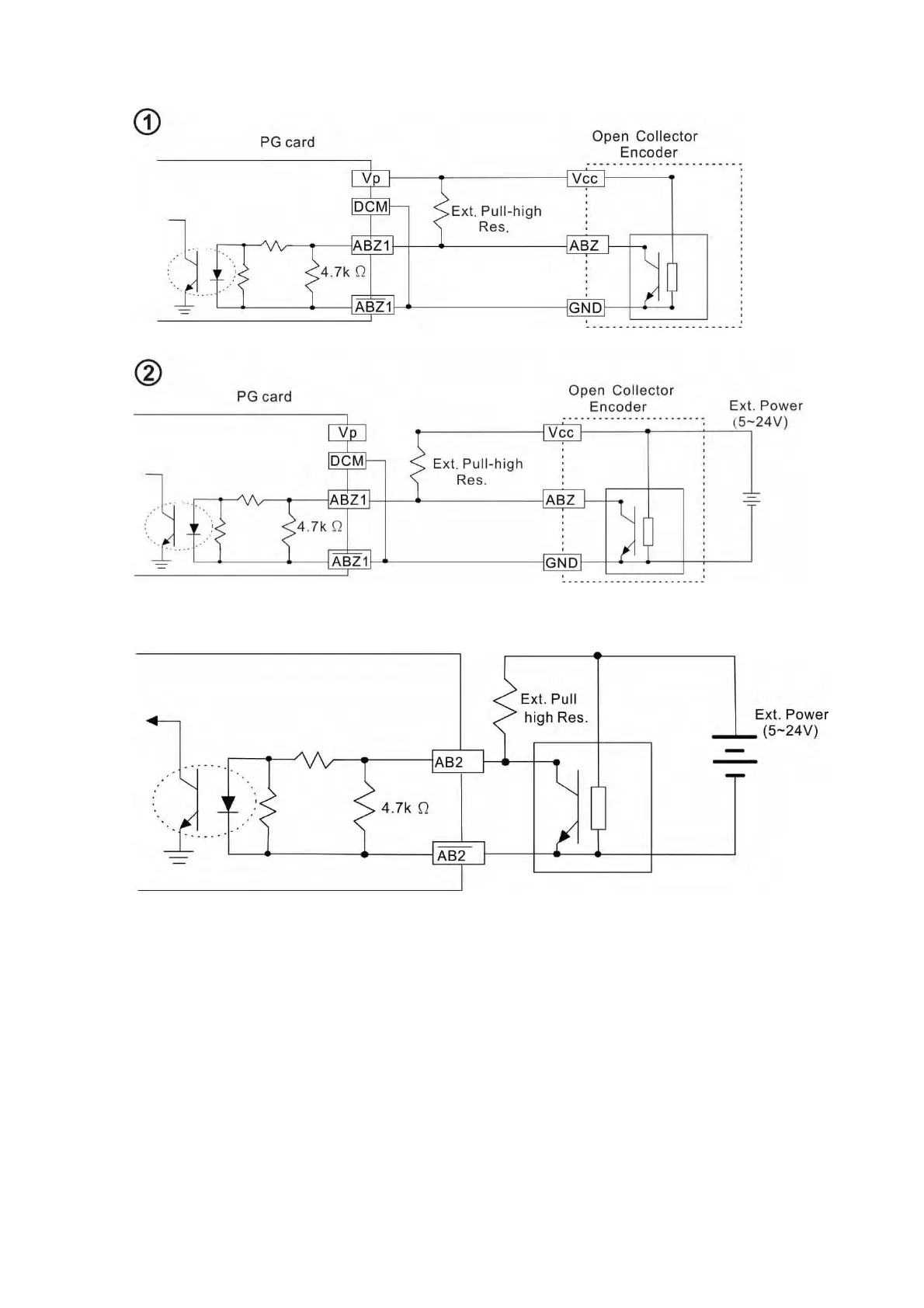 PG1 card wiring diagram (two images below are wiring diagrams of open collector encoder)