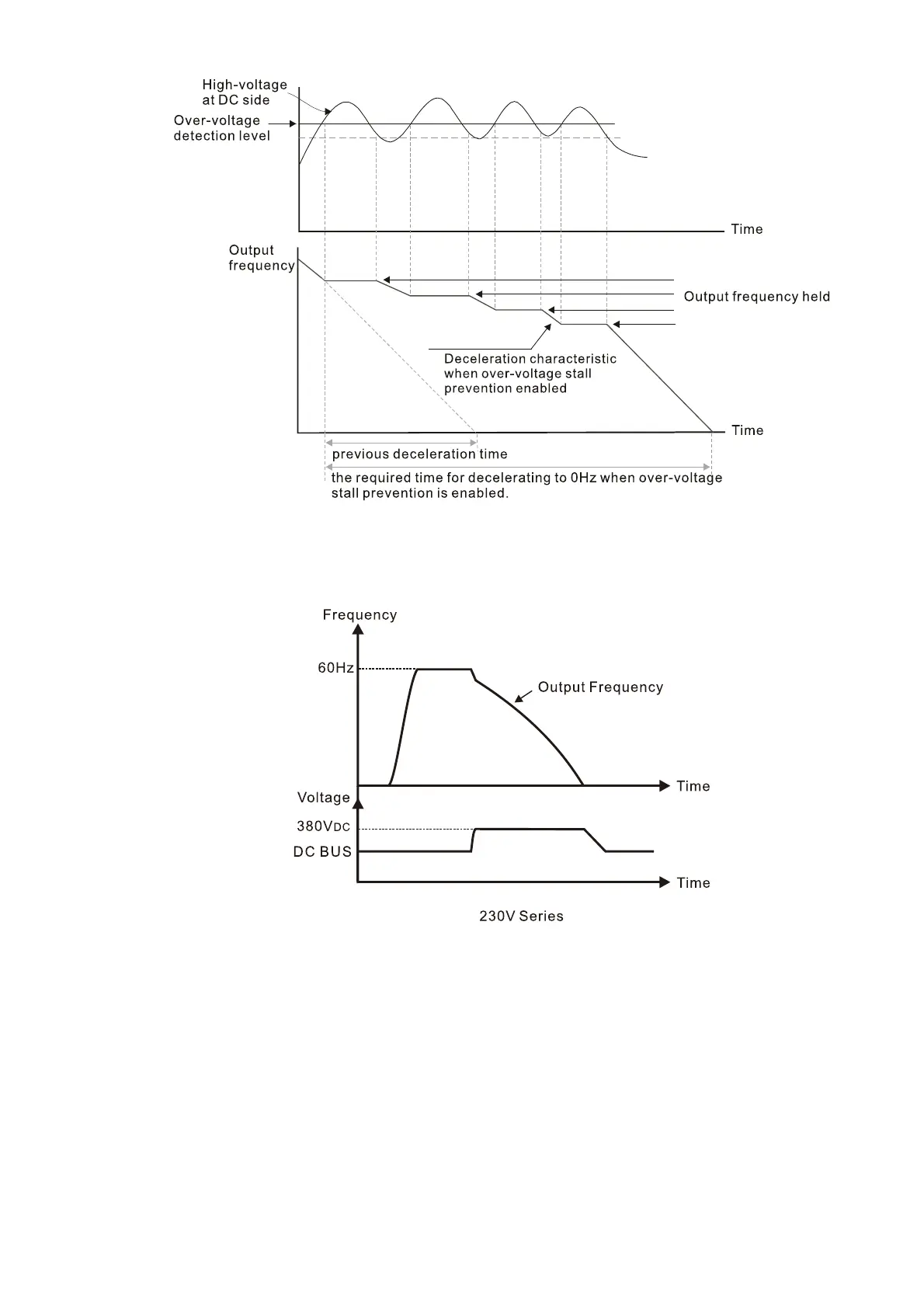 When you enable the over-voltage stall prevention, the drive’s deceleration time is longer than the