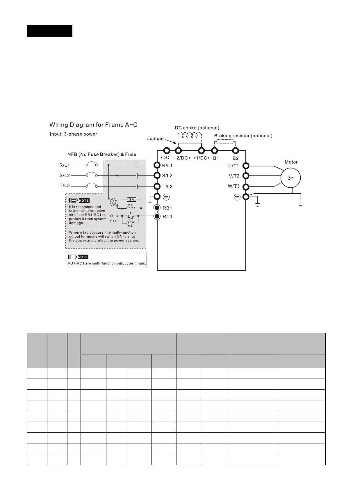 Install the DC reactor between terminals +2/DC+ and +1/DC+. Remove the jumper (shown below)