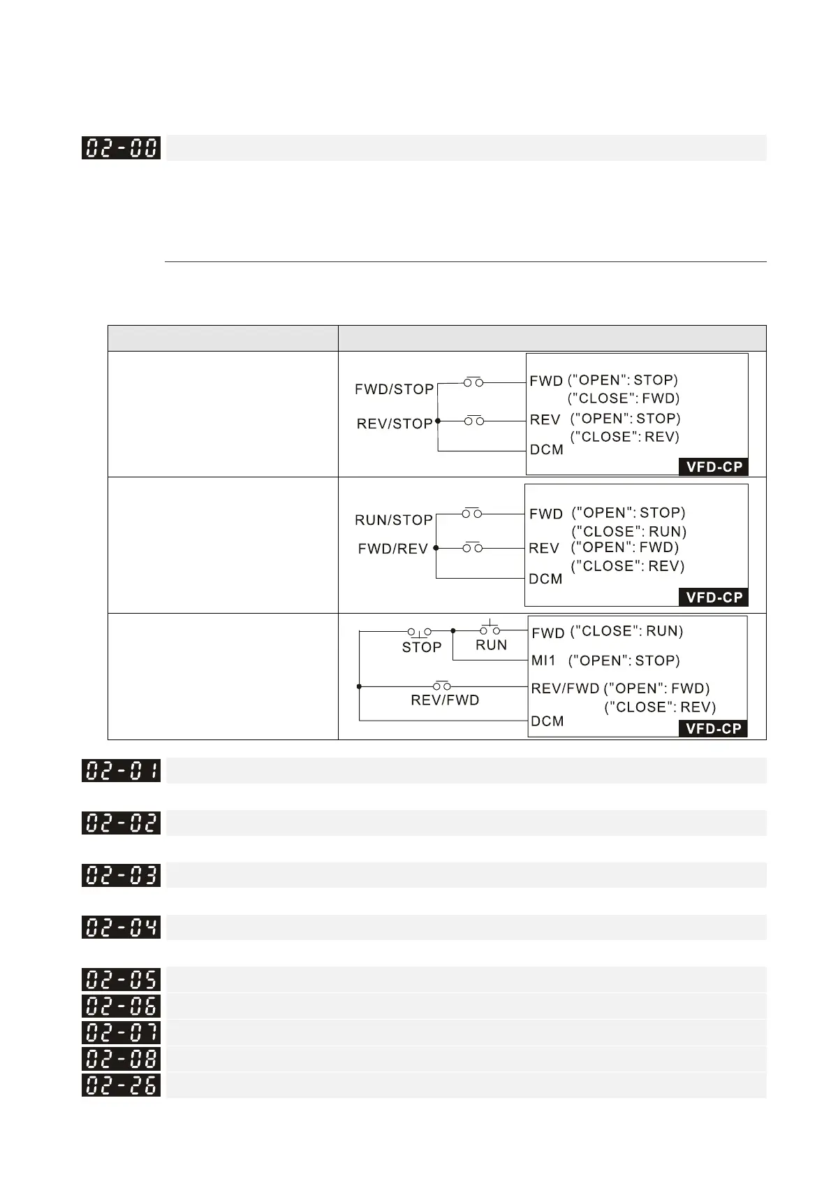 This parameter sets the configuration of the terminals (Pr.00-21=1 or Pr.00-31=1) which control