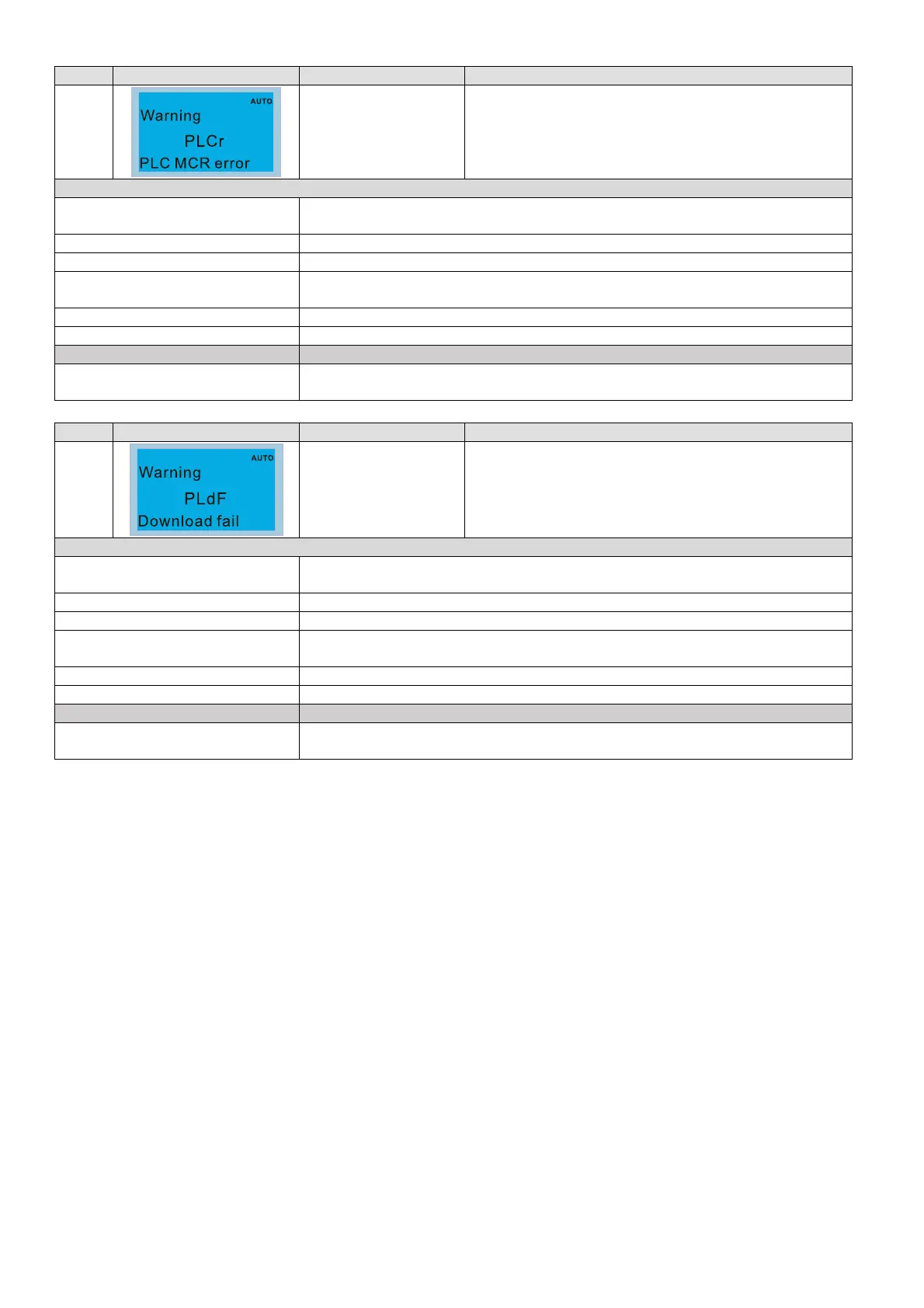 corresponded MCR command, then the PLCr warning shows.