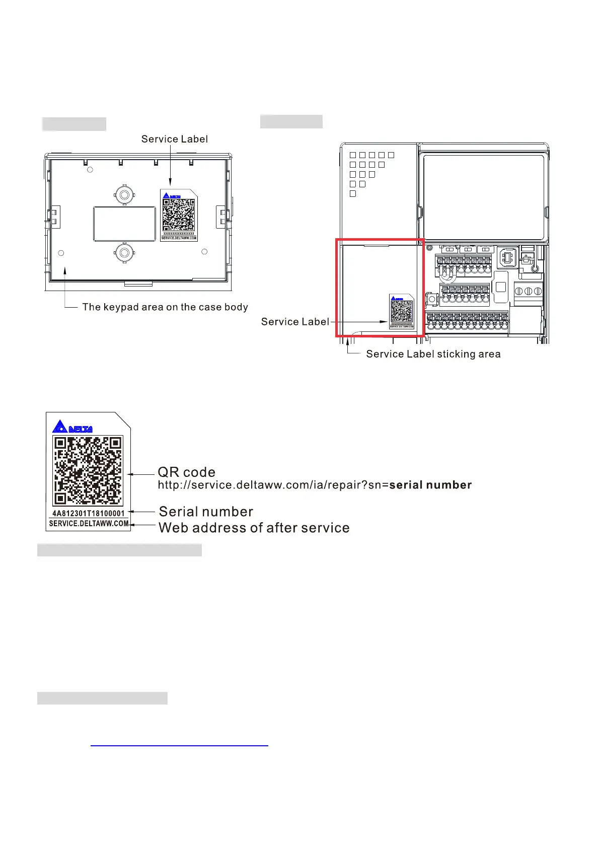 Service link label (Service Label) is pasted on the area as the drawing below shows.