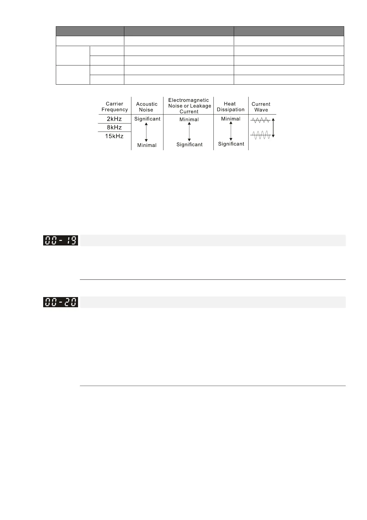electromagnetic noise, the AC motor drive heat dissipation, and the motor acoustic noise.