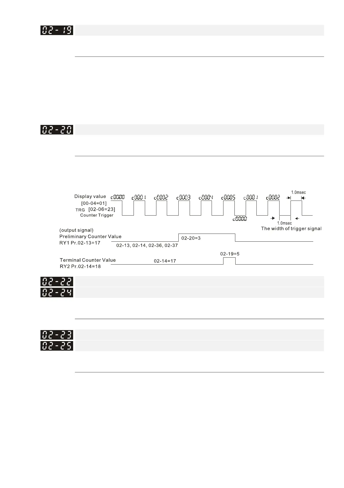 terminal (set Pr.02-06 to 23). When counting is completed, the specified multi-function output