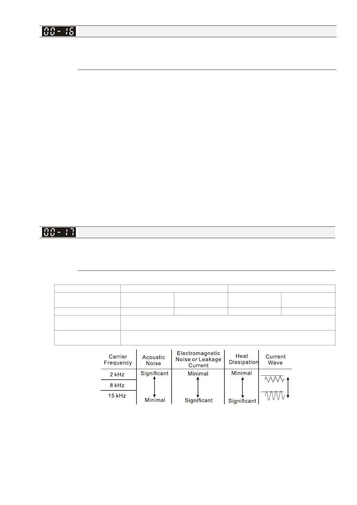 Refer to Pr.00-17 for the setting for the carrier wave. Refer to Pr.00-01 or the specification table