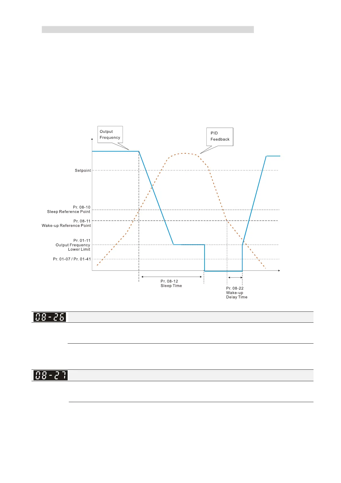 output value is limited by the setting for Pr.08-26. Use this function with Pr.08-21.