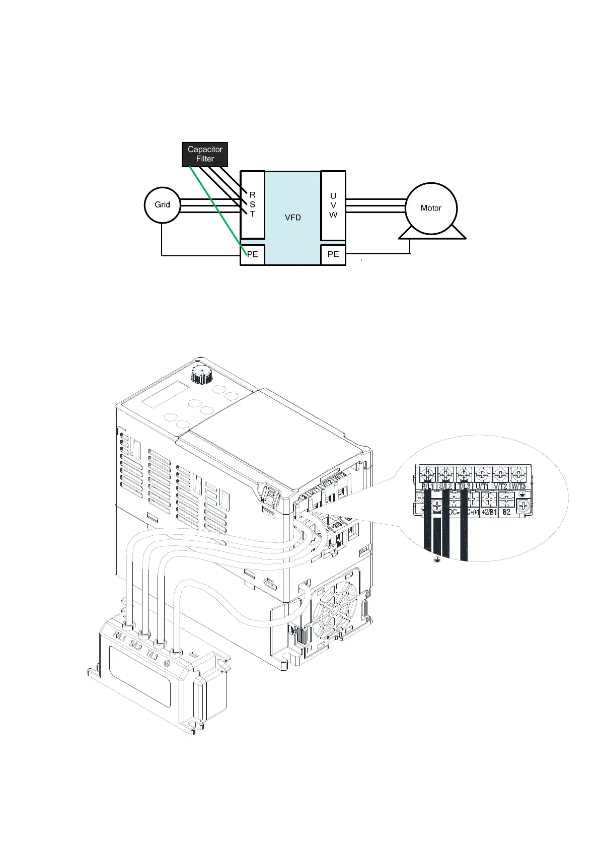 Capacitive filter and drive wiring figure: