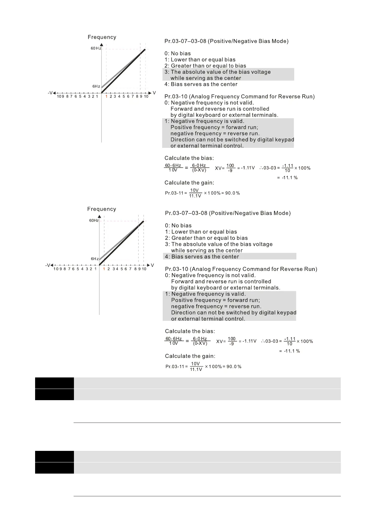 Pr.03-0303-12 are used when the Frequency command source is the analog voltage or current