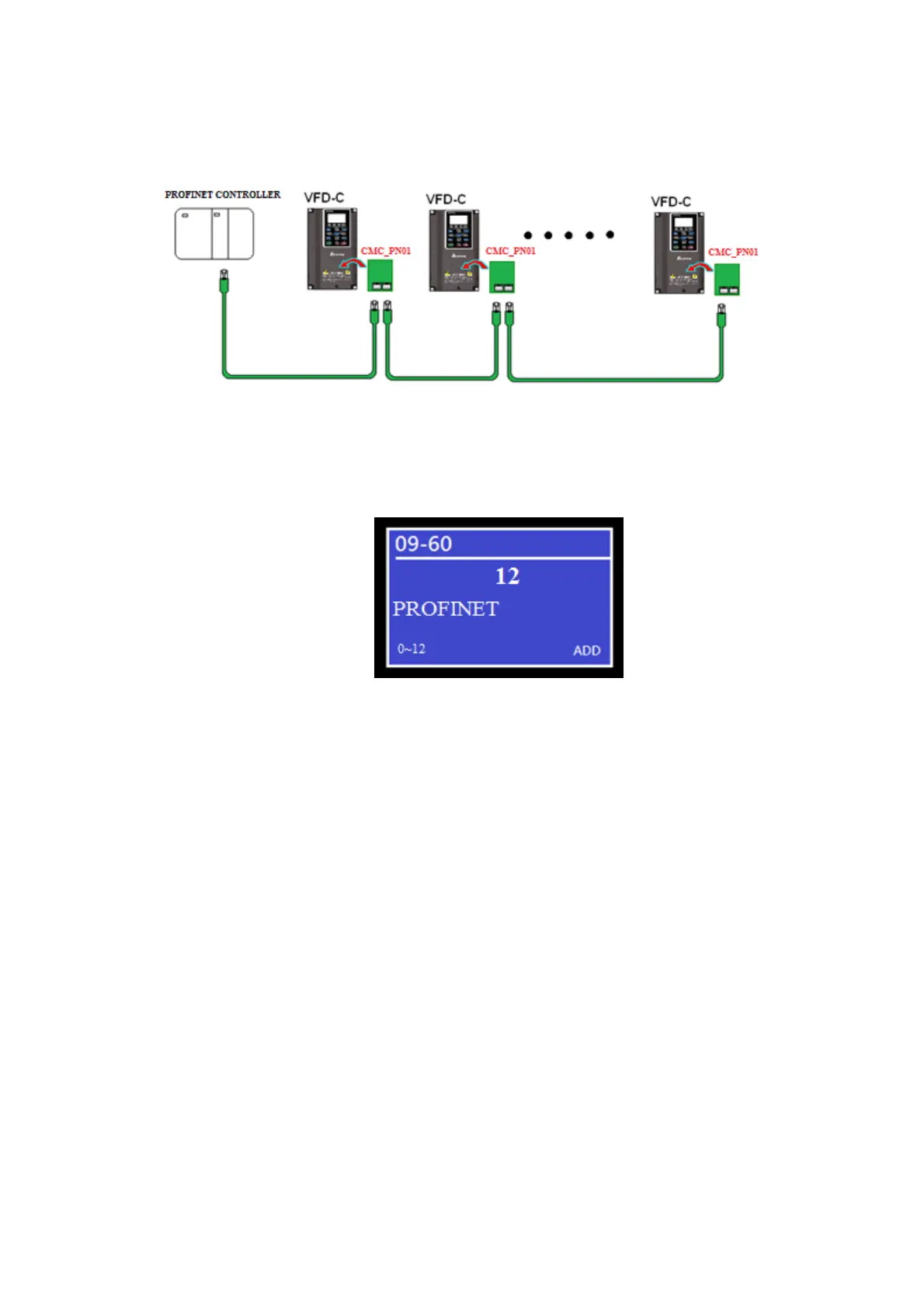 When the hardware is installed and power on, the current set value of Pr.09-60 will be 12, and