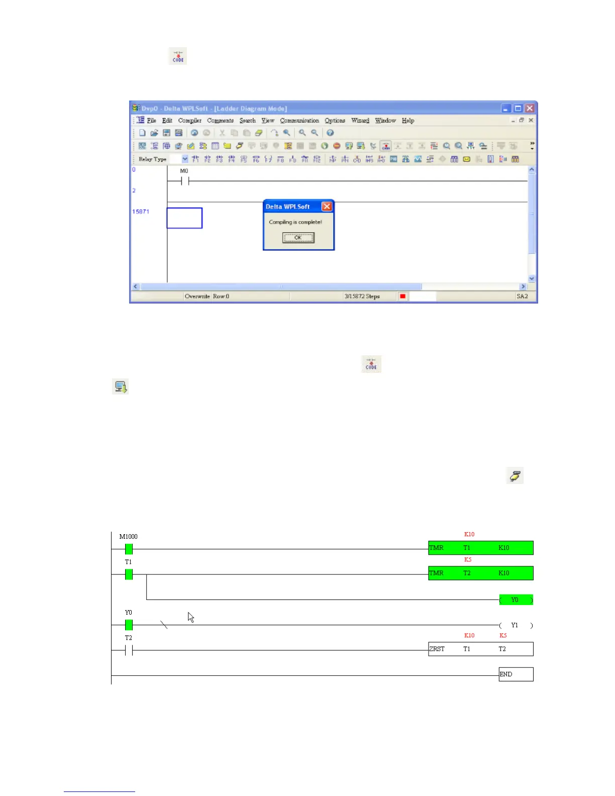 After inputting a program using WPLSoft, select compile . After completing compilation, select