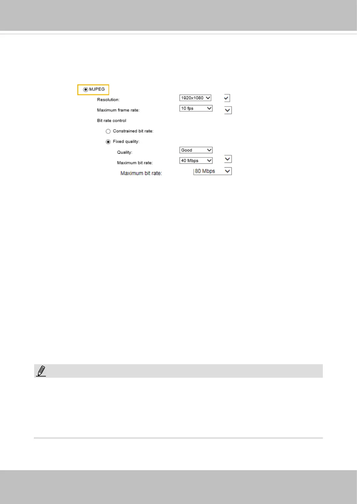 bandwidth consumed for transmitting motion jpegs. The conguration method is identical to that