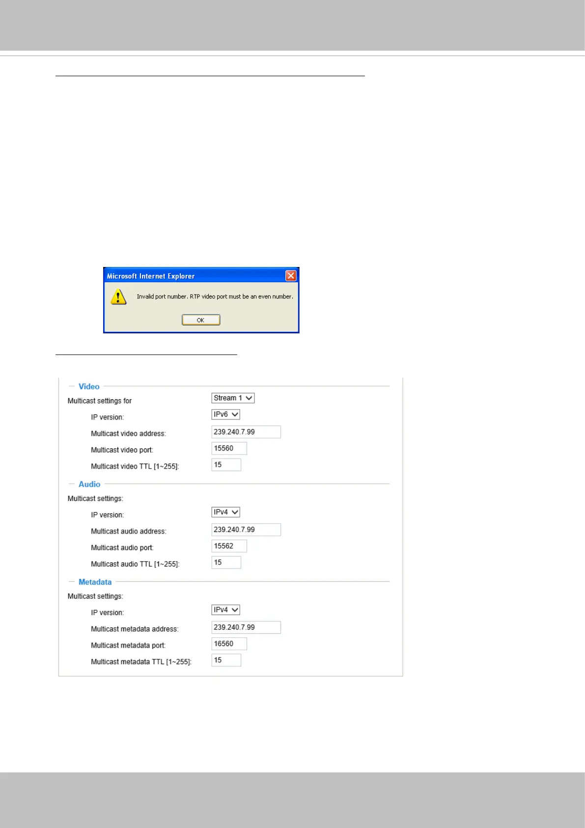 If the RTP ports are incorrectly assigned, the following warning message will be displayed: