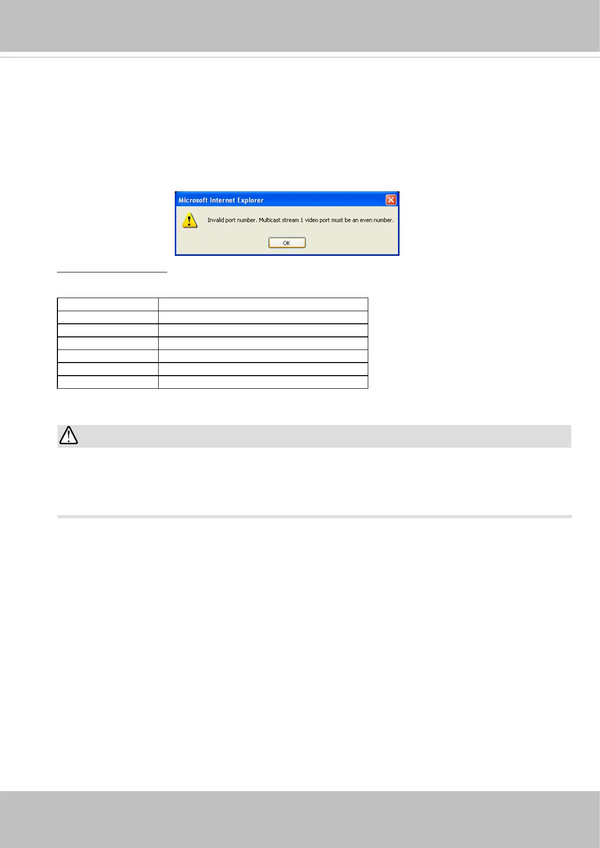 If the multicast RTP video ports are incorrectly assigned, the following warning message will be