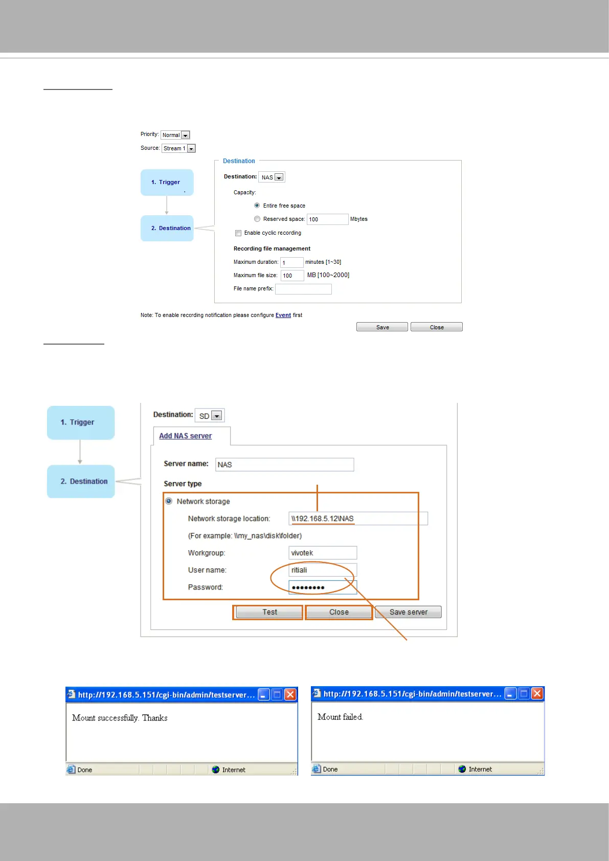 Click Add NAS server to open the server setting window and follow the steps below to set up: