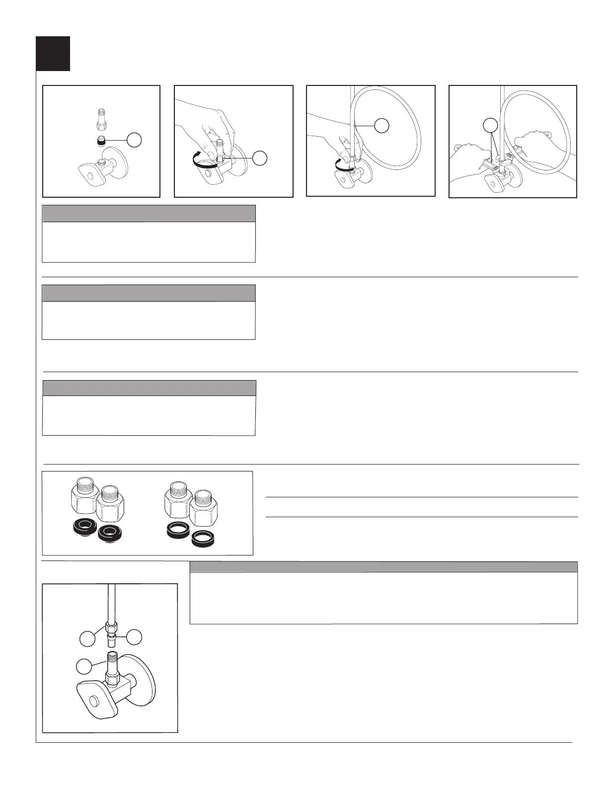 valves. Repeat for other supply stop. Turn on water, examine for leaks.