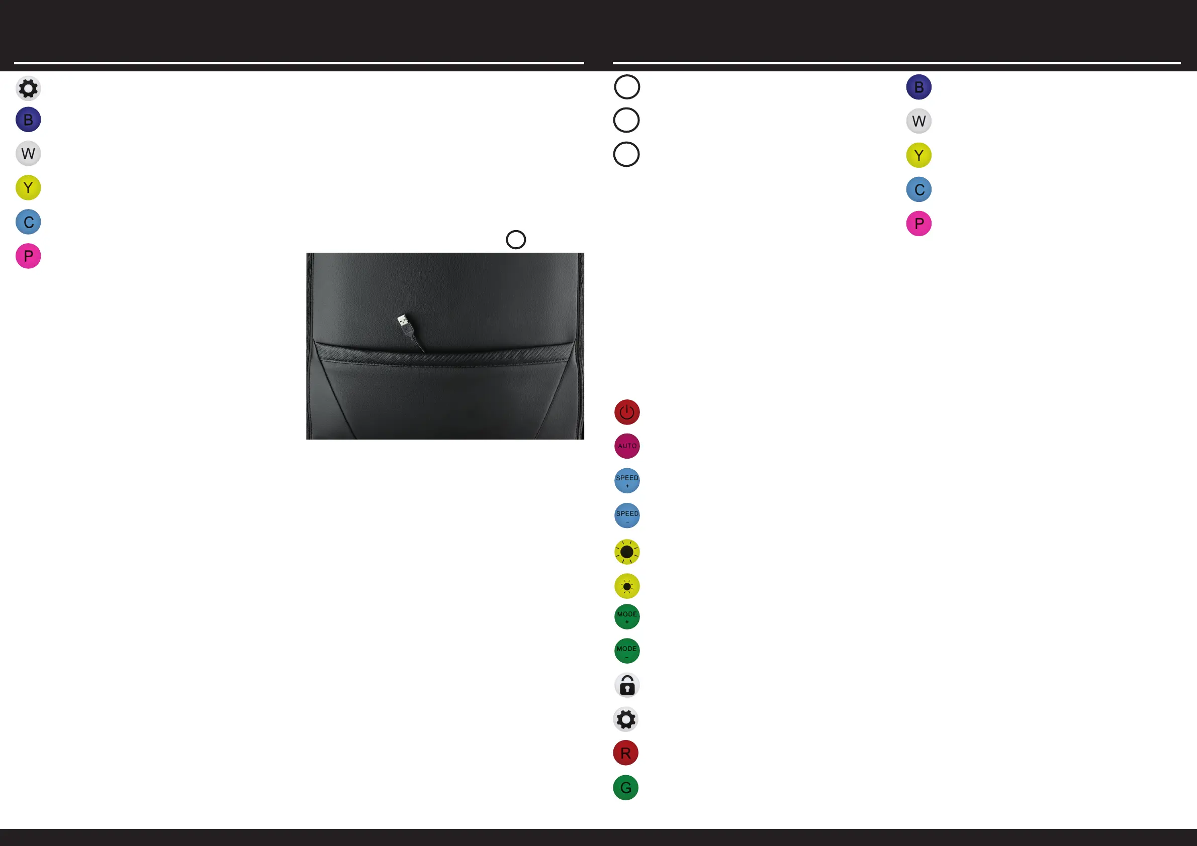the buttons “R”, “G” and “B”. Press the