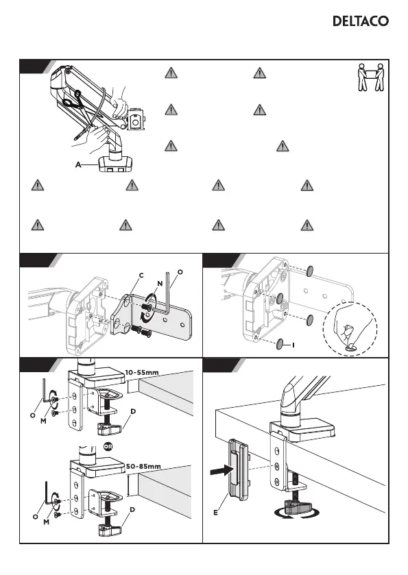 ·Hold monitorarmen stødig med 1 hand på hver