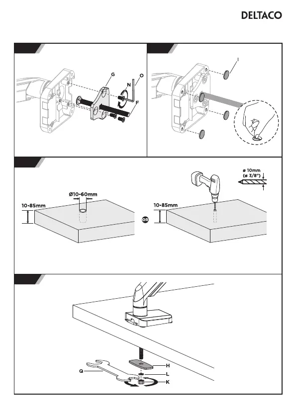 Deltaco ARM-0350 - Desk Grommet Mounting; Grommet Hole Preparation; Securing with Grommet Mount